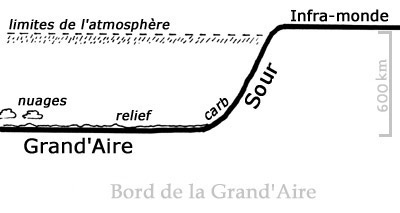 Pente abrupte en carb qui enclôt la Grand'Aire, de 600 kilomètres de hauteur. Le Sour forme la paroi de la dénivellation empêchant l'atmosphère de s’éparpiller à la surface d'Omale. (À ne pas confondre avec la Muraille Sainte, qui se trouve à l’intérieur de l’Aire humaine). Au-delà s'étend le mystérieux infra-monde. | ||